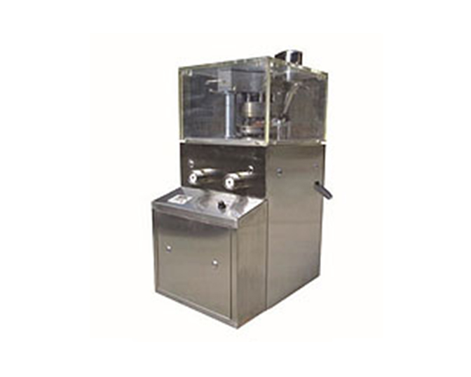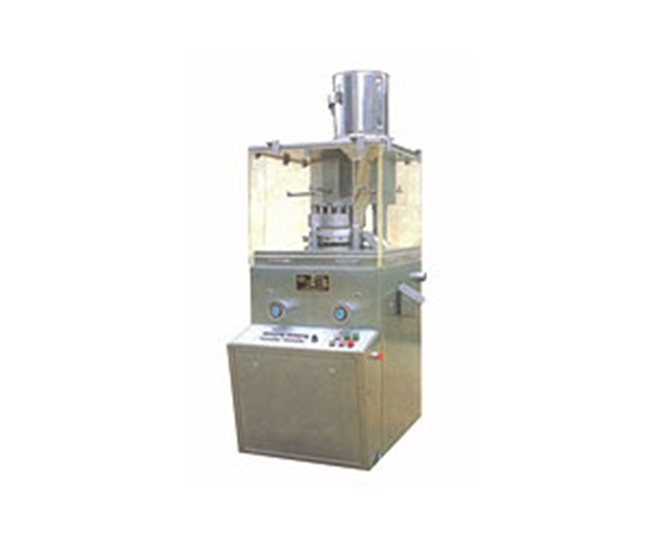 本机是一种双压式自动旋转、连续压片的机器,将颗粒状原料压制成片剂。它主要用于制药工业的片剂生产,同时适用于化工、食品、电子等工业部门。外围罩壳为全封闭形式,材料采用不锈钢,内部台面用不锈钢材料,能保持表面光泽与防止交叉污染,符合GM户要求。装有透明玻璃的门窗,能清楚观寥压片的状态,侧面板熊全部打开,易于内部清理和保养。所有控制器和操作件均布局合理。采用变频调速装置进进电气调速,操作方便,转动平稳,安全准确。配有过载保护装置,当压力过载时,能自动停机。实行机电一体化,采用触摸键及屏幕显示。传动系统密闭在机器主体下方油箱中,是安全分隔的独立部件,亦不会有相互污染,又使传动付浸润在油池中,易散热且耐磨。机器装有吸尘装置,能将压制室内飞扬的粉尘吸收干净。机器的易损件如上轨道,加料器,料斗,传动蜗杆,粉量器等与ZP33型老产品具有通用结构、有利于标准化、通用化、系列化。冲模可与ZP19: ZP33、ZP33B. ZP35,.ZP37压片机通用。